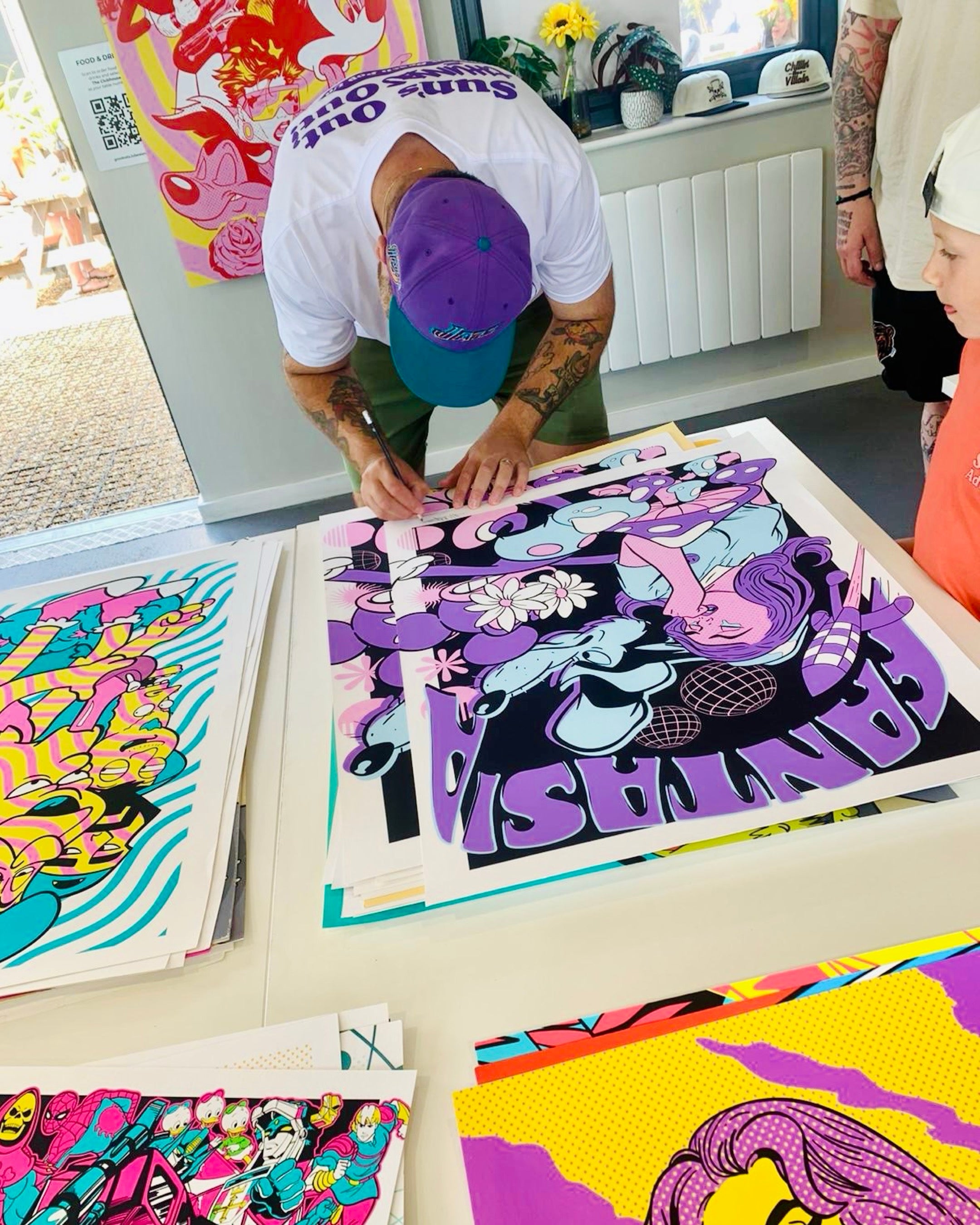 I'm not a one man team however, we're a family business! While I'm busy painting and creating art, my wife; Elisa helps manage the brand and handles all the orders that you awesome people place. And when we get super busy we even manage to rope in our two daughters Lola and Maggie into helping us. Not to mention all our amazing friends who help us out at our pop shops and art conventions!